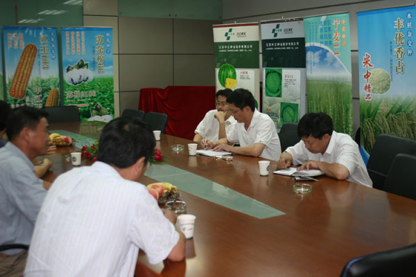 8月14日下午,江蘇農(nóng)林職業(yè)技術(shù)學(xué)院黨組成員在學(xué)院黨組書(shū)記朱洪生、院長(zhǎng)王焱同志的帶領(lǐng)下,來(lái)我公司考察指導(dǎo)工作??偨?jīng)理包月紅同志代表公司全體員工熱情接待了江蘇農(nóng)林職業(yè)技術(shù)學(xué)院黨組成員,并向江蘇農(nóng)林職業(yè)技術(shù)學(xué)院黨組成員詳細(xì)匯報(bào)公司上半年的種子生產(chǎn)和經(jīng)營(yíng)情況。