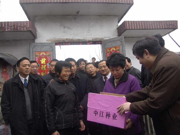 2007年3月,江蘇省人民政府副省長黃莉新女士,在江蘇省農(nóng)林廳領(lǐng)導(dǎo)的陪同下,將我公司的優(yōu)質(zhì)良種贈送給泰洲市興化市的農(nóng)民朋友。