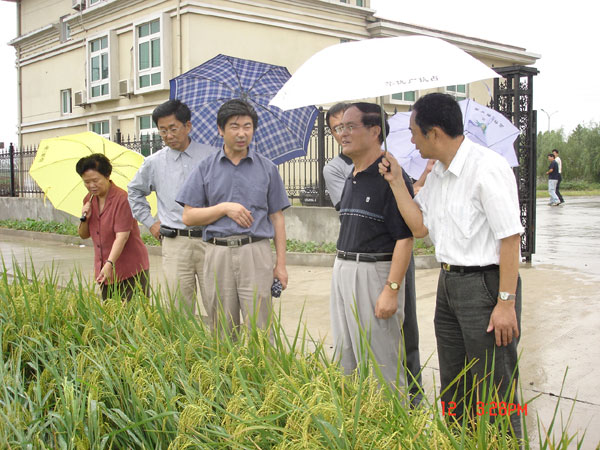2005年9月,時任江蘇省人大常委會副主任俞敬忠同志,在江蘇省農(nóng)林廳有關領導的陪同下參觀考察我位于南京市六合區(qū)的雜交水稻科研基地。