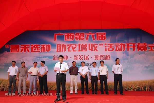 自治區(qū)農(nóng)業(yè)廳韋祖漢副廳長主持了啟動(dòng)儀式,農(nóng)業(yè)廳張明沛廳長、全國農(nóng)技中心鄧光聯(lián)副主任、自治區(qū)農(nóng)科院鄧國富副院長、南寧市李國忠副市長等領(lǐng)導(dǎo)以及全區(qū)14個(gè)市農(nóng)業(yè)局分管領(lǐng)導(dǎo)、種子站代表、企業(yè)代表等出席活動(dòng)開幕式。