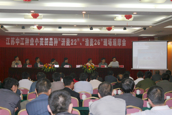 5月23-24日,江蘇中江種業(yè)股份有限公司在宿遷召開濟(jì)麥22、淮麥26現(xiàn)場觀摩會(huì)。公司總經(jīng)理包月紅、副總經(jīng)理凌兆鳳、市場部經(jīng)理郜思寧,山東省農(nóng)科院濟(jì)麥22育成人李豪圣主任、尹慶良總經(jīng)理,淮安農(nóng)科院淮麥26育成人顧正中主任、劉友華總經(jīng)理,宿遷種子站梁建中站長,以及來自蘇北的部分種子經(jīng)營單位代表參加了本次會(huì)議,實(shí)地考察了宿豫區(qū)侍嶺鎮(zhèn)濟(jì)麥22千畝示范方,宿城區(qū)耿車鎮(zhèn)淮麥26百畝示范方。