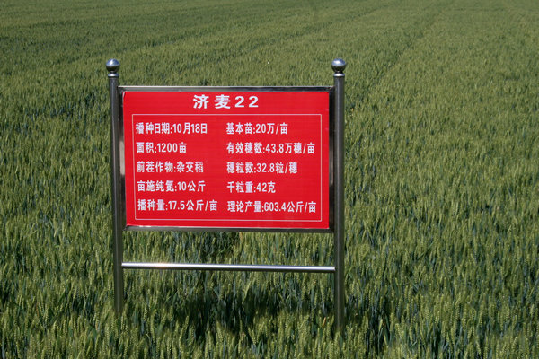 2010年6月11日,中央電視臺(tái)七套《每日農(nóng)經(jīng) 小麥傳奇》報(bào)道:小麥新品種濟(jì)麥22經(jīng)受干旱和倒春寒的考驗(yàn),山東省高產(chǎn)攻關(guān)實(shí)打畝產(chǎn)789.9公斤,創(chuàng)我國冬小麥單產(chǎn)最高紀(jì)錄,去年秋播面積達(dá)2300多萬畝,濟(jì)麥22成為山東省30年來年度推廣面積最大的小麥品種。