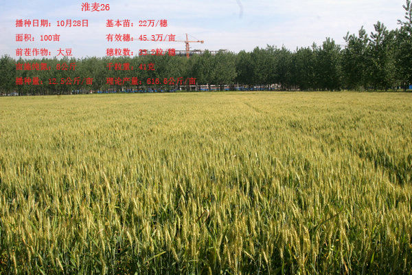 淮麥26是一個(gè)集高產(chǎn)、穩(wěn)產(chǎn)、多抗、優(yōu)質(zhì)、廣適于一身的淮麥系列品種新秀,是淮麥系列品種中最具競爭力和生命力的優(yōu)秀品種之一。