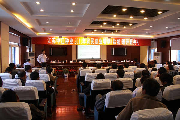 為切實(shí)加強(qiáng)農(nóng)民培訓(xùn),培養(yǎng)農(nóng)村實(shí)用人才,進(jìn)一步提高農(nóng)民的職業(yè)技能和創(chuàng)業(yè)能力,9月20日上午,江蘇中江種業(yè)股份有限公司舉辦的2011年農(nóng)民創(chuàng)業(yè)培訓(xùn)班在鹽城市方強(qiáng)農(nóng)場(chǎng)開班,公司副總經(jīng)理蔣紅云主持了開班典禮,董事長王福銀出席開班典禮并致辭。來自鹽城和宿遷的200余名青年農(nóng)民和農(nóng)業(yè)基地、企業(yè)負(fù)責(zé)同志參加了培訓(xùn)。培訓(xùn)邀請(qǐng)了江蘇省種子管理站湯義華教授、許如根教授、中江種業(yè)高級(jí)農(nóng)藝師洪全國、大中農(nóng)場(chǎng)薛良鵬主任等專家為學(xué)員集中授課并下田間現(xiàn)場(chǎng)指導(dǎo)實(shí)習(xí)。