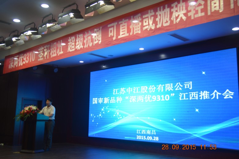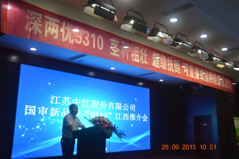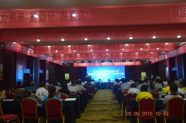 9月28-29日,國審新品種“深兩優(yōu)9310”江西推介會在南昌舉行,來自全省200多位經(jīng)銷商、種植大戶參加會議,公司董事長王福銀,副總經(jīng)理查軍民,江西農(nóng)科院水稻所所長尹建華,江西農(nóng)業(yè)大學(xué)農(nóng)學(xué)院副院長朱昌蘭,南昌市種子管局書記夏忠志,南昌市農(nóng)科院院長馬眾文,江西分公司總經(jīng)理熊茂龍等領(lǐng)導(dǎo)出席會議,會議由水稻種子事業(yè)部經(jīng)理黃國華主持。