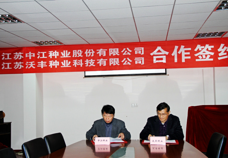 2015年12月31日,中江種業(yè)與江蘇沃豐種業(yè)科技有限公司簽署股權(quán)轉(zhuǎn)讓協(xié)議,中江種業(yè)以現(xiàn)金收購(gòu)股權(quán)形式控股沃豐種業(yè)。雙方負(fù)責(zé)人參加簽約儀式,江蘇省種子管理站站長(zhǎng)何金龍到會(huì)祝賀,總經(jīng)理蔣紅云主持簽約儀式。