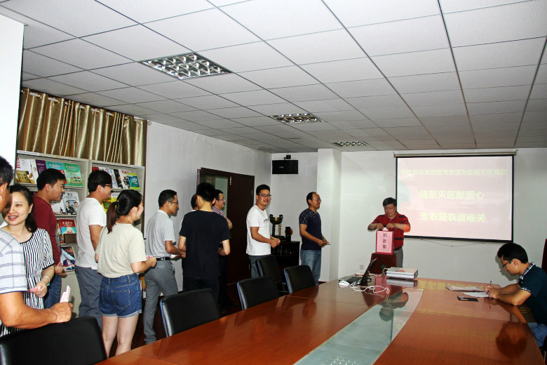 捐款現(xiàn)場,公司領導班子成員帶頭捐款,全體黨員以及干部群眾積極響應,紛紛獻出自己的愛心。此次共募集愛心捐款11500元,資金將通過學院轉鎮(zhèn)江市慈善總會用于鹽城災害救助。
