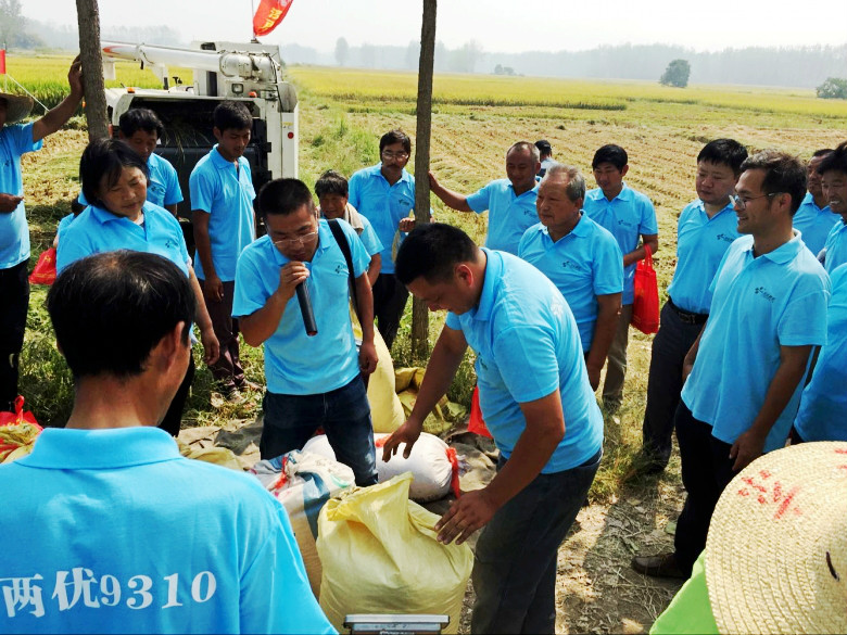 2016年9月10日,公司在江蘇盱眙召開新品種“深兩優(yōu)9310”現(xiàn)場測產(chǎn)觀摩會,來自各個鄉(xiāng)鎮(zhèn)的經(jīng)銷商、種植大戶及周邊農(nóng)戶共計100余人參加了此次會議。