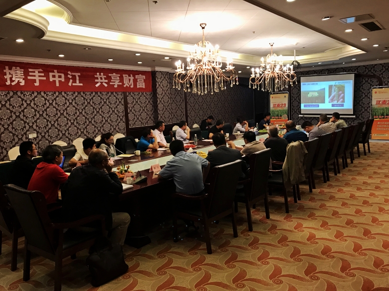 觀摩會后,在泗洪北辰國際會展中心召開了座談會,公司副總經(jīng)理凌兆鳳、宿遷中江種業(yè)有限公司總經(jīng)理劉志勇出席會議。會議由公司市場部經(jīng)理王文主持。王文經(jīng)理詳細介紹了“江麥23”品種來源、產(chǎn)量水平、特征特性以及近兩年來的試驗示范綜合表現(xiàn);隨后宿遷中江劉志勇總經(jīng)理對該品種近兩年在宿遷地區(qū)的田間表現(xiàn)做了詳細介紹,并點評了“江麥23”的幾個突出優(yōu)點:穗粒結構合理豐產(chǎn)性好、赤霉病抗耐性強、株高矮莖桿壯抗倒性強;還引申介紹了淮北麥區(qū)葉枯病、紋枯病今年的發(fā)生勢態(tài),選擇代理小麥品種要注重安全性。最后公司凌兆鳳副總經(jīng)理做了總結性發(fā)言,他表示經(jīng)歷風雨方顯“江麥23”品種真本色,公司將新品種推介會安排到五月下旬召開,基于對“江麥23”品種抗性的信心,讓大家看到品種后期的真實表現(xiàn)。公司“江麥系列”新品種在以后的三到五年內(nèi)會在市場上形成強有力的沖擊,希望通過與各位共同合作,打造“江麥”品牌、鑄就“中江”偉業(yè)。
