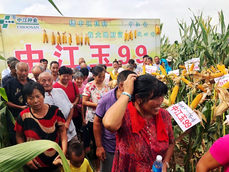 公司玉米部聯(lián)合各地經(jīng)銷商組織零售商代表及農(nóng)戶代表進行了田間觀摩。總體評價“中江玉99”果穗大、籽粒深、抗病性抗倒性好、熟期較同類型品種早,是一個綜合性狀優(yōu)良的雜交玉米新品種。春播蒜茬尤為突出,并得到一致認可:“中江玉99”大有可為!