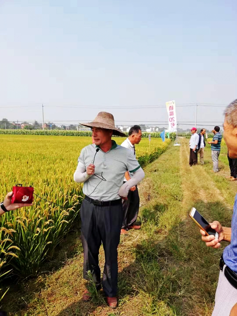 安徽省糯稻種植普遍采取直播方式,參會代表現(xiàn)場觀摩了無為縣陡溝鎮(zhèn)種田大戶夏柱華采用此方式種植的200畝“鎮(zhèn)糯20號”,田間表現(xiàn)穗數(shù)多、穗型大、結(jié)實(shí)率高、無病蟲害,熟相稈青籽黃。夏柱華在田頭詳細(xì)介紹了播種、除草、施肥、防病治蟲和水分管理情況,整個生長期用肥,40斤尿素加60斤復(fù)合肥(氮磷鉀16-16-16),能達(dá)到目前很棒的豐產(chǎn)性,使參會人員對“鎮(zhèn)糯20號”留下了深刻印象,紛紛在田間拍照、拍視頻,還有代表現(xiàn)場取稻穗數(shù)結(jié)實(shí),大穗能達(dá)到240多粒。夏柱華開心地說:今年種植200畝“鎮(zhèn)糯20號”比預(yù)想的收入要增加10萬元。