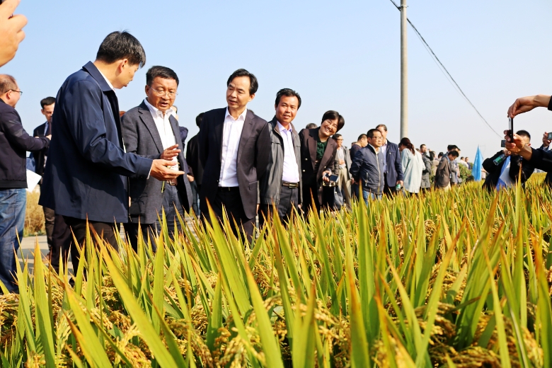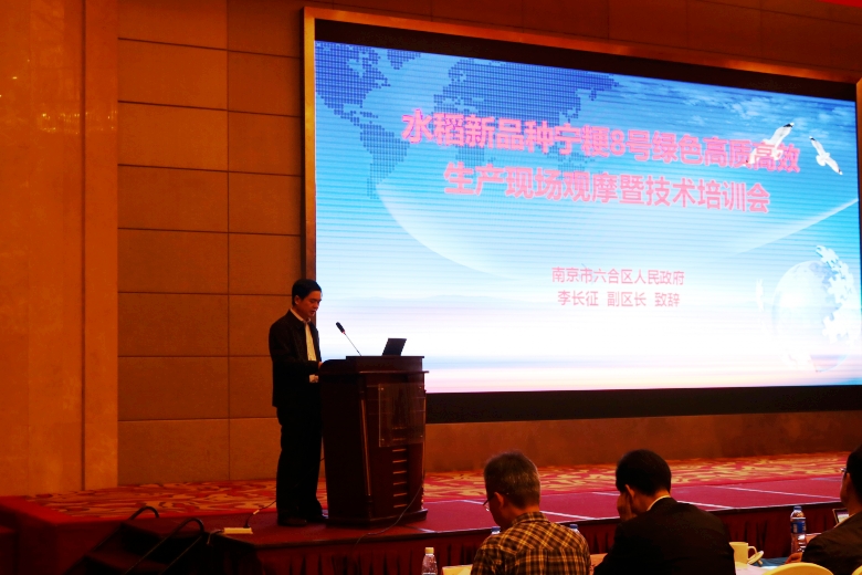 10月19日,“寧粳8號(hào)”綠色高質(zhì)高效生產(chǎn)現(xiàn)場(chǎng)觀摩暨技術(shù)培訓(xùn)會(huì)在公司所在地六合成功召開(kāi)。中國(guó)農(nóng)業(yè)科學(xué)院原黨組書(shū)記陳萌山,江蘇省人大常委會(huì)原副主任俞敬忠,中國(guó)農(nóng)科院副院長(zhǎng)萬(wàn)建民院士,南京農(nóng)業(yè)大學(xué)黨委書(shū)記陳利根教授,常州市政協(xié)張耀鋼副主席,江蘇省農(nóng)業(yè)農(nóng)村廳唐明珍總農(nóng)藝師,南京農(nóng)業(yè)大學(xué)丁艷鋒副校長(zhǎng),江蘇省種業(yè)協(xié)會(huì)張堅(jiān)勇會(huì)長(zhǎng)及省農(nóng)業(yè)農(nóng)村廳相關(guān)處室負(fù)責(zé)人出席會(huì)議;江蘇沿江和蘇南八市農(nóng)業(yè)農(nóng)村局分管局長(zhǎng)、農(nóng)技推廣系統(tǒng)、種子管理系統(tǒng)代表,公司蘇皖浙三省經(jīng)銷(xiāo)商代表及種田大戶(hù)代表210余人參加會(huì)議。會(huì)議由省種子管理站何金龍站長(zhǎng)主持,六合區(qū)人民政府李長(zhǎng)征副區(qū)長(zhǎng)致歡迎詞。