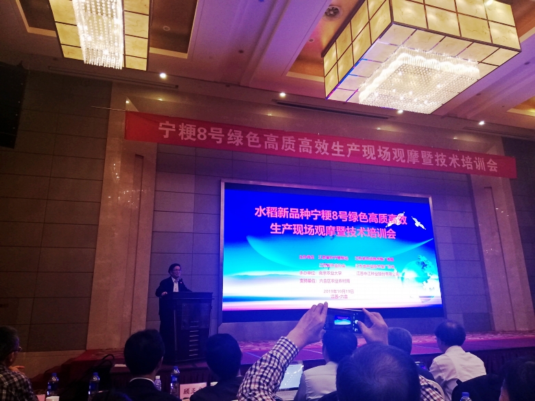 萬(wàn)建民院士作了《“寧粳8號(hào)”的選育及特征特性介紹》報(bào)告;南京農(nóng)業(yè)大學(xué)丁艷鋒副校長(zhǎng)為大會(huì)作了《“寧粳8號(hào)”優(yōu)質(zhì)高效栽培技術(shù)》專(zhuān)題培訓(xùn)。省農(nóng)技推廣總站管永祥站長(zhǎng)作了《全力推進(jìn)稻米產(chǎn)業(yè)高質(zhì)量發(fā)展,努力打造新時(shí)代江蘇魚(yú)米之鄉(xiāng)》報(bào)告。