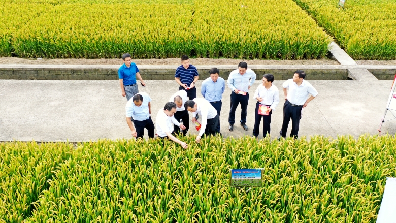 參會代表現(xiàn)場觀摩了白馬湖農(nóng)場170畝“佳源粳1號”綠色高質(zhì)高效生產(chǎn)示范方和“江蘇好品種”展示田的“佳源粳1號”,即將收獲的“佳源粳1號” 穗型大,稈青籽黃粒飽,呈現(xiàn)一派豐收景象。參加觀摩的領(lǐng)導(dǎo)、專家和代表對“佳源粳1號”交口稱贊,蔡廳長深入田間查看長勢情況。示范方理論測產(chǎn)809.6公斤。