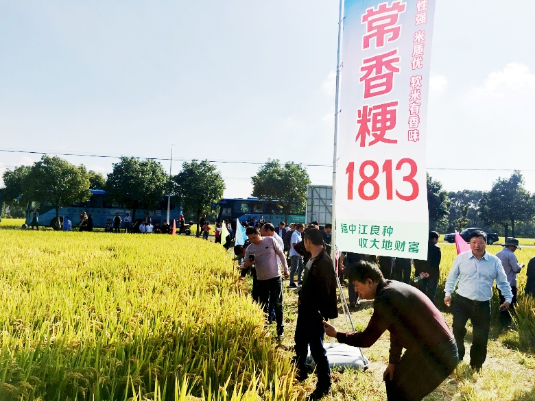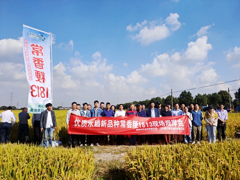 10月11日在江南福地常熟,我公司和常熟市農(nóng)業(yè)科學(xué)研究所聯(lián)合召開常香粳1813現(xiàn)場觀摩會(huì)。常香粳1813是常熟市農(nóng)科所最新育成并通過審定的早熟晚粳水稻品種,集米質(zhì)優(yōu)、熟期適中、抗倒性強(qiáng)、中抗稻瘟病、稻米有香味等諸多優(yōu)點(diǎn)于一身,適宜在江蘇省沿江及蘇南地區(qū)種植。