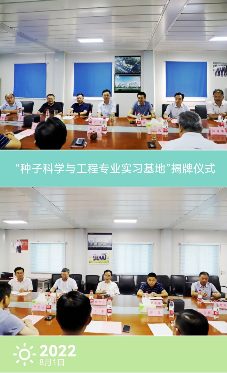 8月1日下午,揚州大學(xué)農(nóng)學(xué)院“國家一流專業(yè)建設(shè)點——種子科學(xué)與工程專業(yè)實習(xí)基地”揭牌儀式在公司圓滿舉行。揚州大學(xué)農(nóng)學(xué)院書記王軍、院長嚴長杰、副書記陸江峰、副院長陳源、教授郭文善、許如根、郭寶??;公司總經(jīng)理蔣紅云、副總經(jīng)理張鐵耀、凌兆鳳、科研總監(jiān)羅德祥、科研所副所長陸建康等共同出席了本次儀式。
