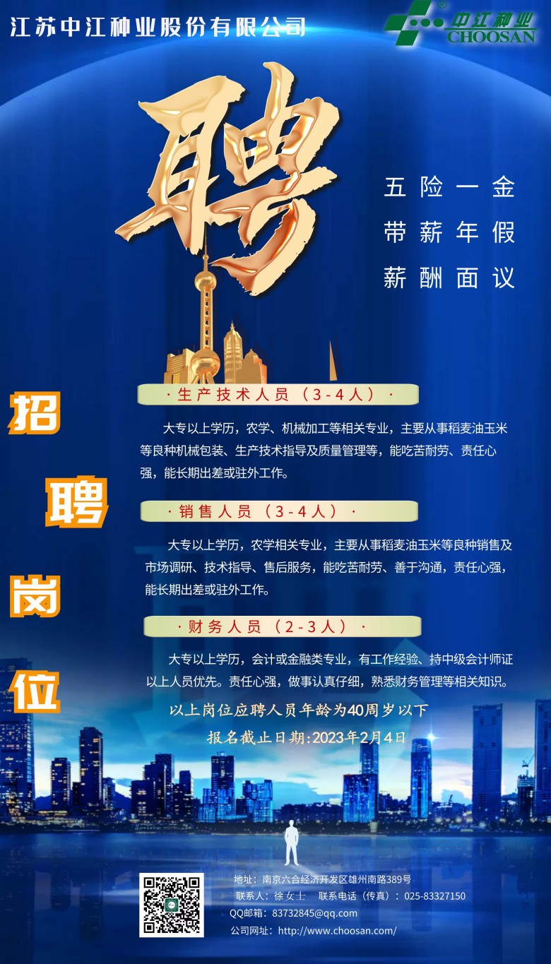 江蘇中江種業(yè)股份有限公司招聘啟事