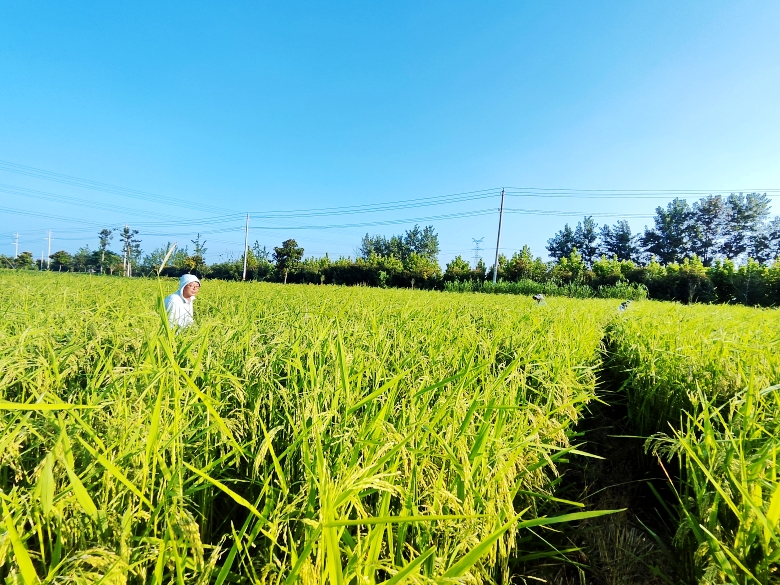 九月,秋糧收割陸續(xù)展開。行走在鄉(xiāng)間田野,金色的田野里稻香四溢,一束束飽滿的稻穗彎下了腰,在藍天白云的映襯下,構成一幅靚麗的豐收畫卷。