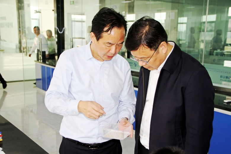 10月9日,省糧食和物資儲(chǔ)備局黨組書(shū)記、局長(zhǎng)胡建軍一行,到公司阜寧研發(fā)加工中心調(diào)研考察。鹽城市政府常務(wù)副市長(zhǎng)勾鳳誠(chéng)、阜寧縣縣委書(shū)記張利華陪同調(diào)研。