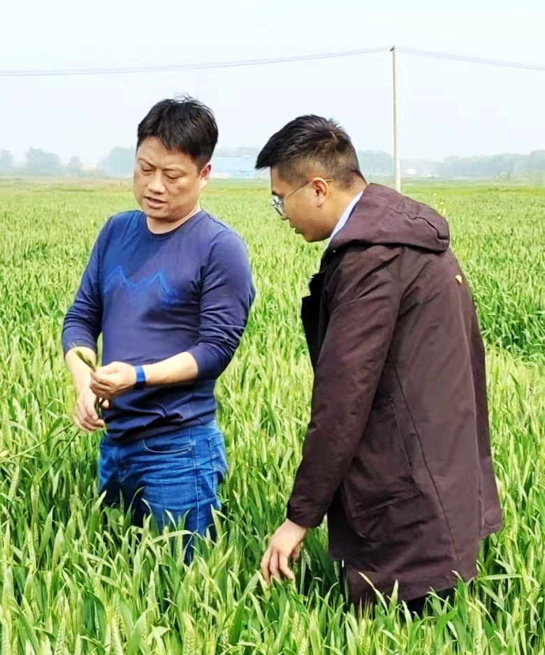 當(dāng)選宿遷市人大代表后,戴傳剛更深感責(zé)任重大。他深知,再好的技術(shù),唯有讓農(nóng)民用得上、能增收,才算真正落地。公司創(chuàng)新“企業(yè)+農(nóng)戶”模式,每年科學(xué)布局2萬(wàn)余畝種子生產(chǎn)基地。戴傳剛成了這些基地的???,春播時(shí),蹲在田埂邊,手把手指導(dǎo)農(nóng)戶播種技巧和田間管理要點(diǎn);夏管期,利用早晚涼爽時(shí)段,組織農(nóng)戶在樹蔭下開設(shè)“田間課堂”,用最通俗易懂的語(yǔ)言講解病蟲害識(shí)別與防治,或是請(qǐng)來專家現(xiàn)場(chǎng)“把脈開方”。收獲時(shí),他必到場(chǎng)測(cè)產(chǎn),和農(nóng)戶一起分享豐收的喜悅,更仔細(xì)傾聽他們對(duì)品種表現(xiàn)和市場(chǎng)需求的反饋。敏銳的他發(fā)現(xiàn)當(dāng)?shù)蒯劸飘a(chǎn)業(yè)對(duì)優(yōu)質(zhì)軟質(zhì)小麥的需求,積極推動(dòng)公司與洋河集團(tuán)對(duì)接,最終使公司兩個(gè)優(yōu)質(zhì)品種獲得認(rèn)可。通過發(fā)展“訂單農(nóng)業(yè)”,以高于市場(chǎng)的保護(hù)價(jià)回收,給參與生產(chǎn)的農(nóng)戶吃下“定心丸”。“只有農(nóng)戶腰包鼓起來,鄉(xiāng)村振興才有根基??吹洁l(xiāng)親們?cè)鍪?,比自己出成果還高興?!边@是他常掛嘴邊的話。