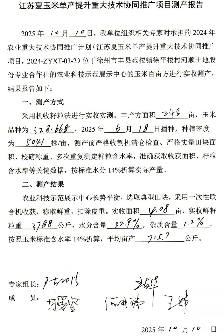 經(jīng)省、市專家組成的測產(chǎn)組現(xiàn)場實收測產(chǎn),“江玉668”畝產(chǎn)達到715.7公斤。與會專家一致認為,在氣候條件整體不利的年份取得這一產(chǎn)量成績實屬不易,充分肯定了該品種的穩(wěn)定性與推廣價值。