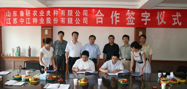 2007年7月10日上午,在山東省農(nóng)科院,我公司副總經(jīng)理包月紅先生,代表中江種業(yè)與山東魯研農(nóng)業(yè)良種有限公司簽訂了合作協(xié)議,出席簽字儀式的還有山東省農(nóng)科院逯巖副院長(zhǎng)等。