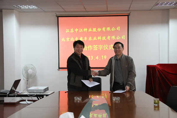 簽字儀式上,經(jīng)雙方磋商達(dá)成一致,決定在平等自愿、優(yōu)勢互補、互利共贏的基礎(chǔ)上,成立江蘇中江種業(yè)股份有限公司北京分公司。